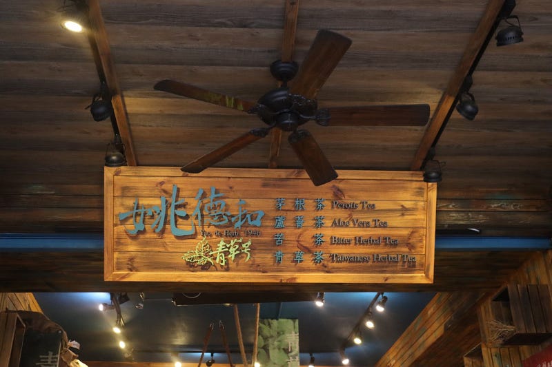 【記者黃子馨、林雨潔/台北市報導】談到青草茶,多數人腦中首先浮現出的都是它黑漆漆的的外表,接下來則是:「這不是長輩們才會喝的嗎?」。但在姚德和青草號,草藥能夠呈現的不僅只有青草茶一種選擇,不同草藥,能夠煮出不同味道的茶飲,也能以不同的樣貌出現在眾人眼中,姚德和青草號老闆姚勝雄說,像是店內的草藥茶包,就是他和父親共同研究出的精華。